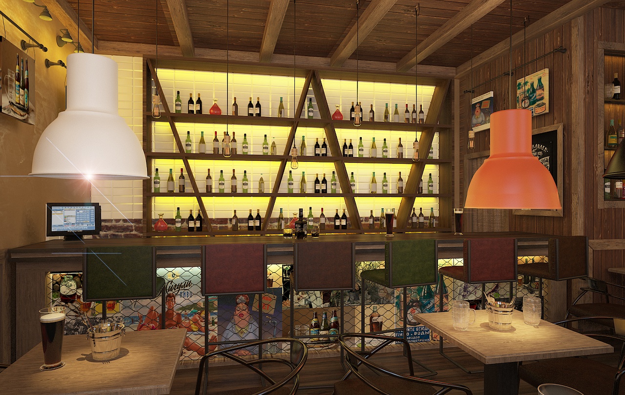 • Оформление пивного бара, разработка концепции, подбор мебели.